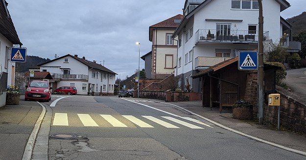 Es geht um zwei gegenüberliegende Bushaltestellen in Pleutersbach (unser Bild) und eine Haltestelle in Brombach. In Pleutersbach sollen die Busbuchten aufgegeben werden, so dass die Busse in Zukunft auf der Fahrbahn halten werden, weil dies von Planerseite als sicherer angesehen wird. Der Zebrastreifen soll - ebenfalls aus Sicherheitsgründen - um rund 50 Meter in Richtung Eberbach verlegt werden.