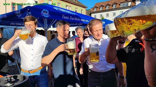Das Wetter spielte diesmal allerdings nicht durchgängig mit. Der Freitagabend war sommerlich und trocken, und auch der Samstag startete freundlich. Es wurde aber zunehmend schwül, und am frühen Samstagabend zog eine Gewitterfront mit erheblichem Regen über Eberbach hinweg. Das Festgelände war dann erst einmal weitgehend menschenleer. Anschließend blieb es zwar trocken, und etliche Besucher wagten noch einmal einen Festbesuch. Aber ganz so voll wie üblicherweise wurde es dann doch nicht mehr. Der Sonntag mit verkaufsoffenen Geschäften verlief dann bis auf wenige Regentropfen relativ ruhig.