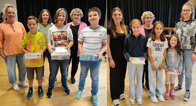 Verabschiedungen und Preisverleihungen (Fotos: Claudia Richter)(cr) Fleißige Rechner und kreative Künstlerinnen wurden am Mittwoch, 30. Juli, an der Dr. Weiss-Grundschule ausgezeichnet. Verabschiedet wurden bei der Feier auch die Kinder der vierten Jahrgangsstufe.