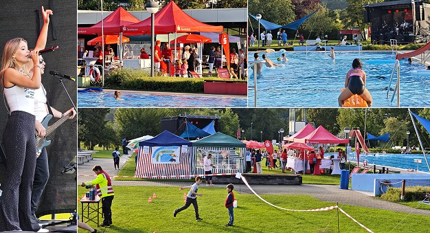Der Förderverein des Eberbacher Schwimmbäder e.V. hatte gemeinsam mit den Städtischen Diensten zur Feier des Ferienbeginns eingeladen. Es gab ein buntes Spieleprogramm im und am Wasser, Bewirtung aus dem Freibadkiosk sowie Livemusik und DJ-Unterhaltung. Die Sparkasse Neckartal-Odenwald feierte im Rahmen ihrer Jubiläumswoche ebenfalls mit und bot alkoholfreie Cocktails sowie eine Tombola.