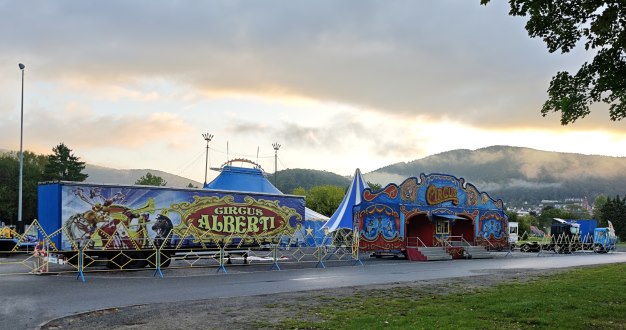 Artistische Vorstellungen im Zelt in der Au (Foto: Hubert Richter)(hr) Unter dem Motto “Farbenspiel der Artistik†gastiert ab heute der “Circus Alberti†in Eberbach auf dem Festplatz in der Au.