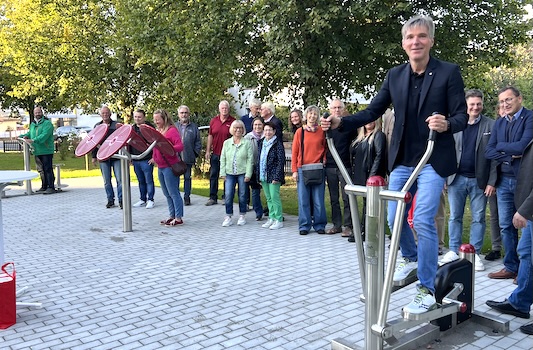 Nach den Worten folgten die Taten: Einige der zur Einweihung der Geräte gekommenen Gäste setzten sich in Bewegung und testeten das neue Angebot. Das Open-Air-Fitnessstudio steht Jung und Alt rund um die Uhr kostenlos zur Verfügung.