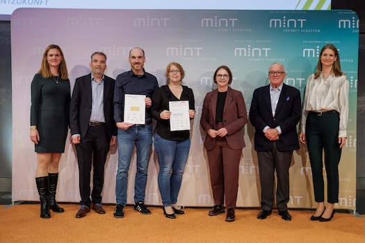 Hohenstaufen‑Gymnasium Eberbach erneut ausgezeichnet V. l.: Juliane Meister (Wissensfabrik), Stefan Küpper (Südwestmetall), Gerrit Konrad (HSG), Anne Schmehling (HSG), Staatssekretärin Sandra Boser, Thomas Sattelberger (MINT Zukunft), Dr. Katharina Schäfer (SAP). (Foto: Jan Potente)(bro) (hsg/gk) Bei einer feierlichen Veranstaltung am 17. Oktober ehrten „MINT Zukunft schaffen!“ und SAP in Sankt Leon-Rot insgesamt 152 Schulen aus Baden-Württemberg für ihr herausragendes Engagement in Mathematik, Informatik, Naturwissenschaften, Technik und digitaler Bildung. Das Hohenstaufen-Gymnasium Eberbach erhielt die Auszeichnungen „MINT-freundliche Schule“ und „Digitale Schule“ und zählt damit zu den Schulen, die MINT-Kompetenzen nachhaltig und altersgerecht fördern. Die Urkunden wurden von Anne Schmehling und Gerrit Konrad entgegengenommen.