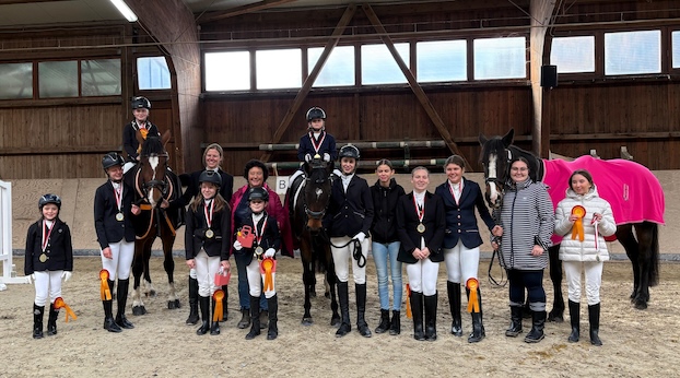 Neun Teilnehmer, neun Siege (Foto: privat)(bro) (rau) Am vergangenen Wochenende gab es für die jungen Reiterinnen und Reiter des Reit- und Fahrvereins Oberzent beim Breitensportturnier des ORV Erbach einen wahren Goldschleifenregen.