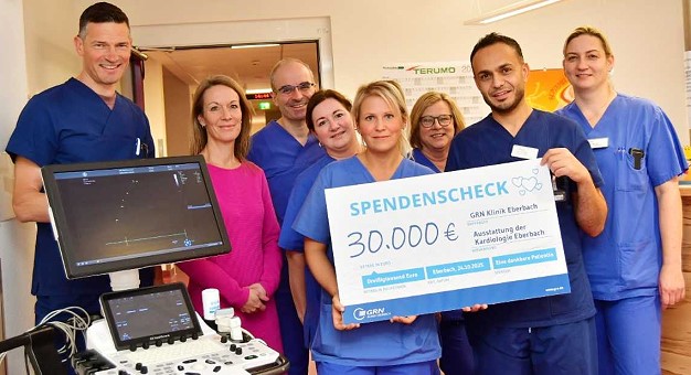 30.000 Euro für zweites Herzultraschallgerät  (Foto: GRN)(hr) Weil einer Patientin in der GRN-Klinik Eberbach aus einer lebensbedrohlichen gesundheitlichen Lage geholfen wurde, spendete die Frau der Klinik einen hohen Geldbetrag.