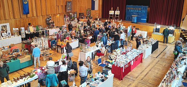 Für die Bewirtung der Marktbesucher sorgt der Lions Club Eberbach mit hausgemachtem Kuchen, Kaffee, anderen Getränken und kleinen Snacks, die im Foyer angeboten werden.