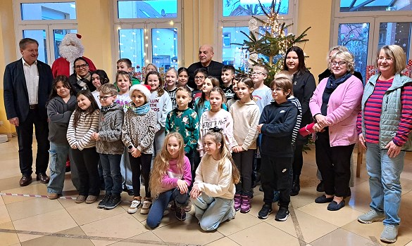 Geschäftsführerin Elena Marciante und ihr Team hatten rechtzeitig vor dem Nikolaustag viele Päckchen gepackt und verteilten diese mit Unterstützung des “Nikolaus†an Grundschulen und Betreuungseinrichtungen. In Eberbach freuten sich die Kinder und Lehrkräfte der Dr.-Weiss-Grundschule samt Bürgermeister Peter Reichert (unser Bild) über die Aktion sowie die Kinder und Erzieherinnen der Kindertagesstätte “St. Mariaâ€.