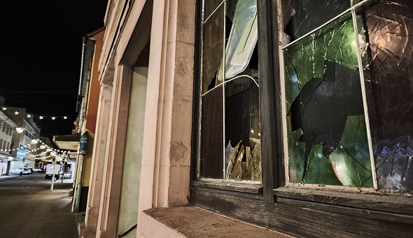 Scheiben eingeworfen und Böller im Gebäude gezündet (Foto: Hubert Richter)(hr) (pol) Am frühen Dienstagmorgen, 30. Dezember 2025, gegen 4.45 Uhr, kam es gleich mehrfach zu Sachbeschädigungen in der Bahnhofstraße in Eberbach.