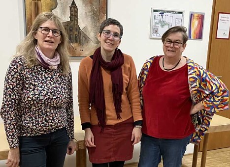 Wenn aus Träumen Räume werden V.l. Beate Fischer (Organistin), Susanne Zollinger (Pfarrerin und Bezirksfrauen-Beauftragte) und Barbara Coors von den evang. Frauen in Baden. (Foto: privat)(hr) (bco) 25 Frauen folgten der Einladung zum Frauen(T)Raumtag für den evangelischen Kirchenbezirk Neckar-Kraichgau am 8. November in Eberbach. Im Mittelpunkt stand der gemeinsame Austausch von Träumen, Ideen oder auch konkreten Projekten im neuen Kirchenbezirk.