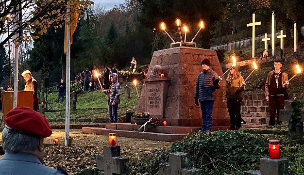 Gedenken und Hoffnung für Frieden und Aussöhnung (Foto: Bianca Weber-Götzenberger)(hr) Die zentrale Kundgebung der Stadt Eberbach zum Volkstrauertag am 16. November fand am Sonntag um 17 Uhr am Ehrenmal auf dem Eberbacher Friedhof statt.
