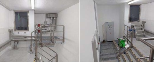 Parallel zur Renovierung der inneren Kammern wurde auch der Vorraum des Hochbehälters gründlich überholt. Hierbei wurde der Putz ersetzt und eine neue, moderne Fliesenausstattung angebracht. Ein wesentlicher Aspekt der Sanierung war die Modernisierung der technischen Einrichtungen. Sämtliche Rohrleitungen im Hochbehälter wurden erneuert, um den Wasserdurchfluss zu optimieren und möglichen Risiken wie Korrosion oder Leckagen entgegenzuwirken. Des Weiteren erhielt die Elektrotechnik ein Update: Moderne Sensoren und Steuerungssysteme wurden installiert, die eine effizientere Überwachung sowie Regelung des Wasserstands und -drucks ermöglichen. Diese technischen Verbesserungen stellen sicher, dass der Hochbehälter nun den Anforderungen einer zukunftssicheren Wasserversorgung genügt.