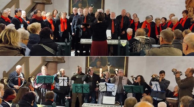 Traditionelle und moderne Weihnachtsmusik in der Quellkirche (Fotos: privat)(hr) (hv) Am vergangenen Samstag, 13. Dezember, fand ab 18 Uhr in der Schöllenbacher Quellkirche ein Konzert des Gemischten Chors “Frohsinn“ 1885 Hetzbach und des GV “Sängerkranz“ Schöllenbach unter der Leitung der gemeinsamen Dirigentin Kerstin Kredel statt.