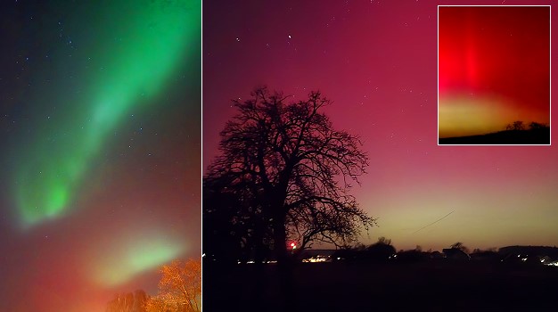 Polarlichter oder Nordlichter werden durch Eruptionen auf der glühenden Oberfläche der Sonne, so genannte Sonnenstürme, ausgelöst. Dabei werden oft auch elektrisch geladene Teilchen in Richtung Erde ausgestoßen und erreichen dann irgendwann das Magnetfeld unseres Planeten. Dieses lenkt die Teilchen zu den Polen hin ab. Wenn die Teilchen auf Luftmoleküle der Erdatmosphäre treffen, entsteht das Leuchten. Das kann in Höhen bis zu 800 km erfolgen und ist eben manchmal nicht nur im hohen Norden, sondern sogar in Süddeutschland sichtbar.