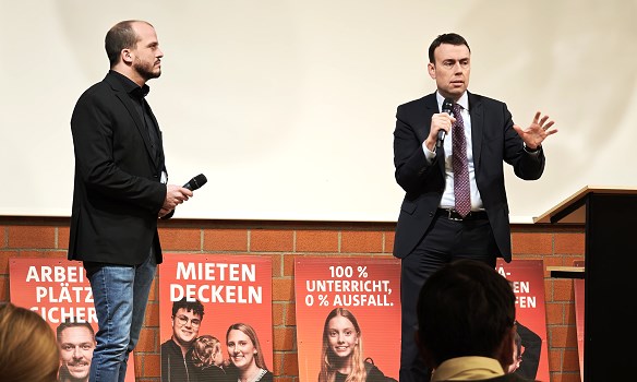 ĂuĂere Sicherheit und gesellschaftlicher Zusammenhalt Jan-Peter Röderer (l.) und Nils Schmid bei der Fragerunde. (Foto: Hubert Richter)(hr) Auf Einladung des Eberbacher SPD-Landtagsabgeordneten Jan-Peter Röderer kam heute aus dem Berliner Bundestag der parlamentarische StaatssekretĂ€r im Bundesverteidigungsministerium, Nils Schmid (SPD), nach Eberbach.