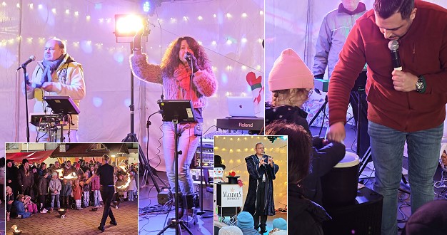 Immer donnerstags bis sonntags war das am 8. Januar eröffnete Budendorf in Betrieb, und an jedem verlängerten Wochenende seitdem war von mittags bis abends Bewirtung und Unterhaltung angesagt. Für Letztere sorgte ein abwechslungsreiches Kulturprogramm, das Veranstalter Sammy Zimmermann mit seiner Familie und befreundeten Schaustellern auf die Beine gestellt hat. Neben reichlich Musik von DJs und Live-Bands gab es unter anderem auch eine Zaubershow mit “Maximus” und ein Feuerspektakel von “Artartistica” (kleine Bilder). Am gestrigen Freitagabend spielte die Band “Mike & Friends” aus der Rhein-Neckar-Region (Bild links).