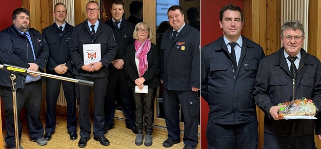 Zum Schluss gab es eine besondere Ehrung: Brandmeister Volker Daum wurde zum Ehrenmitglied ernannt. 30 Jahre Vorstandstätigkeit, davon 16 Jahre als stellvertretender Wehrführer, über 40 Jahre als Musiker der Kapelle und vieles andere, was über den normalen Einsatzdienst hinausging, waren Gründe für diese Auszeichnung.