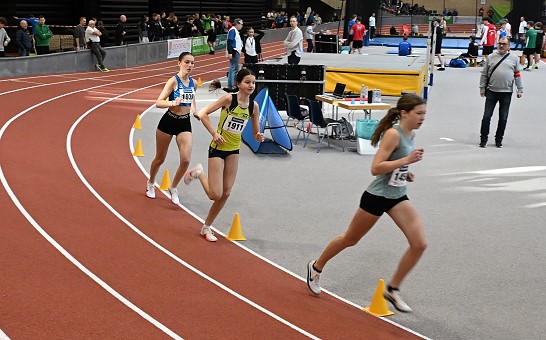 Zum ersten Rennen des Tages stellte sich Ylva Polzin an die Startlinie. Die Teilnehmerzahlen bei den weiblichen U18 waren so hoch, dass die Mädchen in zwei Rennen aufgeteilt wurden. Polzin hatte die schwierige Aufgabe, in ihrem Rennen den Anschluss an ihre Gruppe nicht zu verlieren und gleichzeitig die Tempospitzen in dem Rennen gelassen hinzunehmen. Diesen Spagat meisterte sie bestens. Sie behielt durchgängig den Kontakt und lief kleine Lücken souverän wieder zu. Am Ende benötigte Polzin sehr gute 5:31,88 Min. für 1.500 m. Mit ihrer neuen Bestzeit belegte sie Platz 17 in der Gesamtwertung beider Läufe.