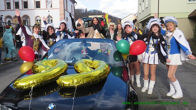 Knapp 80 Zugnummern hatte Röderer vergeben. Die KG Kuckuck selbst und die beiden weiteren Eberbacher Fastnachtsvereine Club Eulenspiegel und KG Urmel waren jeweils mit mehreren Gruppen und Wagen vertreten, außerdem die CG Hirschhorner Ritter, die Neckargemünder Karnevalgesellschaft, die “KaGe Mudemer Wassersucher” aus Mudau und der Wiesenbacher Carnevalclub “Schisslhocker”. Weitere Initiativen aus Eberbach und dem Umland waren vertreten, teils mit aufwändig gefertigten Motivwagen, wie die Karnevalfreunde Haidebow mit einer fahrenden Baustelle, die Rasselbande Eberbach als Retter des Stadtsäckels und die Fastnachtsfreunde Eberbach mit einem rollenden Westernsaloon. Die “Wilde 13” aus Brombach hatte ein Flugzeugcockpit im Schlepptau, das Äppelwoiteam Heddesbach eine große “Polarexpress”-Lokomotive, Spriti und seine Freunde einen “Top-Gun”-Düsenjäger auf dem Dach, die “Wilden aus dem Ittertal” präsentieren ihre Unterwasserwelt, und die Hirschhorner Hexen schwangen ihre Besen. Mit dabei waren auch der diesjährige Abi-Jahrgang des Hohenstaufen-Gymnasiums, der MGV Igelsbach, die “Wimmersbacher Ratze”, die “Linnischer”, die Handballgesellschaft Eberbach, die Fastnachtsfreunde Waldkatzenbach und weitere private Gruppen. Für Live-Musik neben den Stimmungshits aus der Konserve sorgten der Fanfarenzug Eberbach, die “Ghost-Guggs” aus Sinsheim und die Krachkapelle aus Mudau.