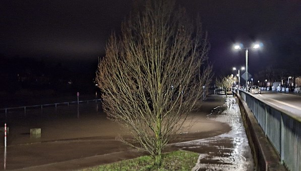 Etwa 5,40 Meter betrug der Pegelstand in Rockenau ziemlich genau um Mitternacht. Da war der Neckarlauer in Eberbach komplett überflutet. Danach ging der Wasserstand fast genauso schnell wieder zurück wie er gestiegen war. Unser Bild entstand heute Morgen gegen 6.30 Uhr.