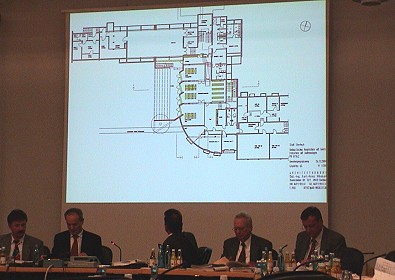 Baubeginn im Juni kommenden Jahres Stadtbaumeister Manfred Janner (2.v.l.) erläuterte die Pläne für das Untergeschoss der Hauptschule mit Werkrealschule. (Foto:Richter)(hr) Die Stadt kann jetzt den Bauantrag für den Umbau des Steige-Schulzentrums stellen, nachdem der Gemeinderat in seiner letzten Sitzung am 16. Dezember die abschließende Planung für den 1. Bauabschnitt einstimmig befürwortete. Dabei geht es zunächst um den Ausbau des Untergeschosses der Hauptschule mit Werkrealschule und die Erweiterung der Realschule. Baubeginn soll im Juni 2005 sein. Im Dezember 2005 soll die Erweiterung der Realschule - Aufstockung eines Teilbereichs auf der Südseite - abgeschlossen sein. Bis Februar 2006 soll der Untergeschoss-Ausbau der Hauptschule fertig sein. Die Kosten für den 1. Bauabschnitt werden auf rund 685.000 Euro geschätzt.