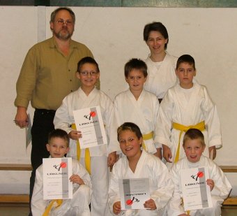 (jc) (ps) Während die Wettkampfgruppe und damit der überwiegende Teil des Karate-Vereins Budokai "ASAHI" Eberbach bis unmittelbar vor Weihnachten mit der Teilnahme an Turnieren beschäftigt war, bereitete sich die Aufbaugruppe Kinder unter Leitung von Birgit Mathes auf ihre nächste Gürtelprüfung vor. Zur Prüfung stellten sich sechs Kinder, die allesamt unter den kritischen Augen von Prüfer Peter Steinbauer mit sehr guten Leistungen die Prüfung zum orangenen Gürtel bestanden.