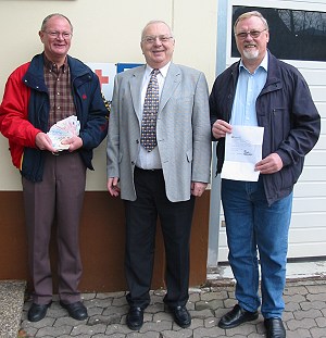 Für Flutwellen-Opfer 1422 Euro gespendet V.l.:Reinhard Schrieber, Dr.Fred Adelmann und Dieter Müller (Foto:Zechel)(jc) (pz) Insgesamt 1422 Euro wurden auf Initiative von Eberbachern jetzt auf das Fluthilfehilfe-Südasien-Konto des Deutschen Roten Kreuzes überwiesen. Bei der Silvesterfeier 2005 im Restaurant "Marienhöhe" wurde auf Initiative von Reinhard Schrieber und der Wirtsleute Zäpfel unter den Gästen 422 Euro gesammelt. 1000 Euro hat die KG Kuckuck auf dieses Konto überwiesen. Man habe sich durchaus überlegt, so der KGK-Präsident Dieter Müller, ob man die Saison wie geplant durchführt und sich bewusst dafür entschieden. Allerdings solle weiter gesammelt werden, wie es auch der Bund Deutscher Karneval empfiehlt. Dr. Fred Adelmann, Vorsitzender des DRK, Eberbach nahm die Kunde sichtbar freudig entgegen. "Wir wollen die Eberbacher mit diesen Initiativen aufrufen, sich weiter für die Opfer des Tsunami zu engagieren", sagte er und nannte die Kontonummer des DRK-Verbandes: Bank für Sozialwirtschaft, BLZ 37020500, Konto-Nr. 414141.