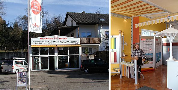Weiteren Expansionsschritt vollzogen Außenansicht und Sven Bauer in seinen neuen Geschäftsräumen (Fotos:Claussen)(jc) Die seit 1993 in Eberbach ansässige Firma Markisen Bauer hat zum Jahresbeginn größere Geschäftsräume im Neuen Weg 1 bezogen. Damit wurde innerhalb weniger Monate, nach Eröffnung einer Filiale in Mosbach, jetzt ein weiterer Expansionsschritt vollzogen. Ausschlaggebend für den Umzug waren die zuletzt beengten Verhältnisse am angemieteten alten Standort im Ohrsbergweg. Ein um Garagentore, Carports, Wintergärten und Rollsicherheitsgitter erweitertes Angebot solle nun für die Kunden anschaulicher als bisher präsentiert werden, so Inhaber Sven Bauer. Auf dem eigenen Firmengelände sollen die entsprechenden Bauelemente in der nächsten Zeit ausgestellt werden. Dort befinden sich nun auch Parkplätze in ausreichendem Maße.