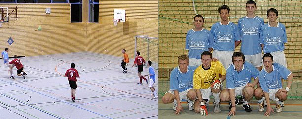 Neckarsteinach gewinnt beim 18. Eberbacher Fußball- Hallenturnier Endspielszene und Siegerteam. (Fotos:Claussen)(jc) Am Abend gewann die SpVgg Neckarsteinach im Endspiel des 18. Eberbacher Hallenturniers gegen den SV Moosbrunn mit 7:2. Die im Feld der 20 am Samstag in das zweitägige Turniers gestarteten Mannschaften vertretenen Teams des TG, VfB und SV Eberbach kamen wieder einmal nicht über die Vorrunde hinaus. Lediglich die SG Rockenau konnte die Eberbacher Farben bis in die Endrunde hochhalten. Im ersten Halbfinale unterlag das Ortsteilteam dem späteren Turniersieger dann deutlich mit 1:5. Im Spiel um Platz drei lief es für Rockenau nur wenig besser. Dem SV Robern, der im spannenden zweiten Halbfinale dem SV Moosbrunn im Neunmeterschiessen mit 4:6 unterlegen war, musste man sich 1:4 geschlagen geben.