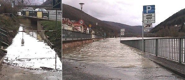 Bis auf rund 5,10 Meter kletterte der Pegelstand in Eberbach und erreichte seinen Höhepunkt heute Abend. Besondere Vorkommnisse im Zusammenhang mit dem Hochwasser gab es bislang keine.