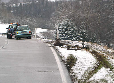 Auf nasser Fahrbahn ins Schleudern gekommen - PKW nicht mehr fahrbereit (Foto:Tonn)(lct) Heute vormittag gegen 10 Uhr ereignete sich ein Verkehrsunfall auf der L 595 in Richtung Eberbach, kurz nach dem Ortsausgang Allemühl. Die 22-jährige Fahrerin eines Nissan Micra geriet bei nasser Fahrbahn und Temperaturen um 0 Grad in einer Rechtskurve ins Schleudern und rutschte schließlich die Böschung hinab. Die Fahrerin kam mit dem Schrecken davon, der PKW war nicht mehr fahrbereit und musste abgeschleppt werden.