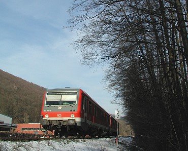 Baumfällungen an der Bahnlinie (Foto:Bernecker)(hr) (stve) Im Gewann Hohenend in Eberbach-Nord säumt auf etwa 400 m Länge ein dichter Gehölzstreifen aus großen Schwarzerlen den dortigen Streckenabschnitt der Bahnlinie Eberbach - Hanau. Dieser Tage hat eine Sicherheitsüberprüfung ergeben, dass sich einige der Bäume schon bedrohlich in Richtung Gleise neigen und gefällt werden müssen, bevor Schlimmeres passiert. Damit Beschädigungen an den Schienen ausgeschlossenen werden können, werden die Stämme mit einem mobilen Kran über den Gleiskörper gehoben und kurzeitig auf dem Betriebsgelände eines im Hohenend ansässigen Unternehmens zur sofortigen Weiterverarbeitung zwischengelagert.