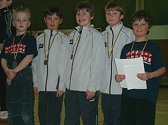 Nicht ganz so spannend, doch um so erfolgreicher turnte sich die jüngere Turnercrew (Jahrgänge 95 und jünger) durch ihre Ligarunde. Schon seit dem ersten Wettkampf halten sich Fabio Broghammer, Lukas Jäger, Bastian Richter und Nikolai Wollkopf mit sichern Übungen auf dem 2. Rang. Zum Endkampf erhielt die Mannschaft mit Giulio Broghammer noch einen zusätzlichen Turner. Doch auch dieser, mit Jahrgang 97 der jüngste der Wettkämpfer, konnte die stabile Leistung der Mannschaft nicht so verstärken, dass die Punkte für den endgültigen Sprung auf das oberste Treppchen ausgereicht hätten. Wie auch im vergangenen Jahr erreichten die jungen Turner den 2. Platz in der Gauschüler-C-Liga.