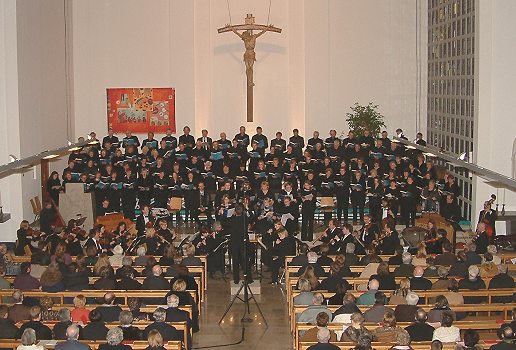 Großartige Aufführung von Johann Sebastian Bachs Monumentalwerk (Foto:Wörner)(tw) (bnc) Ein überwältigendes Musikerlebnis wurde den Besuchern der katholischen Kirche St. Josef am Sonntagabend zuteil, als an die 150 Mitwirkende Johann Sebastian Bachs großartige Matthäus-Passion musikalisch inszenierten. Die Katholische Kantorei Eberbach, die Bezirkskantorei Bruchsal, der Junge Chor Eberbach, das Münchener Barockorchester "l’arpa festante" sowie fünf erstklassige Solisten brachten das monumentale Werk unter der Leitung von Bezirkskantor Godehard Weithoff zur Aufführung.