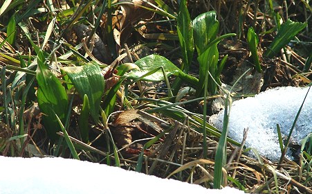 Trotz Schnee und Matsch - Bärlauchduft liegt in der Luft Zwischen den Schneeresten sprießt der Bärlauch. (Foto:Richter)(cr) Selbst das nasskalte Winterwetter hindert den Eberbacher Bärlauch nicht daran, rechtzeitig für die Eberbacher Bärlauchtage zu sprießen. Mancherorts kämpft er sich zwischen den Schneeresten durch, um pünktlich am Freitag, 18. März, präsent zu sein. Dann nämlich steht dieses gesunde und wohlschmeckende Kraut wieder fünf Wochen lang im Mittelpunkt. Bis einschließlich 23. April dauern die "Eberbacher Bärlauchtage am Neckar und im Odenwald", die bereits zum sechsten Mal stattfinden. Das Programm stellte dieser Tage Rolf Wieprecht, Hauptinitiator und Mitglied der Bärlauchaktiven, zusammen mit Christiane Hirsch-Jung, Vertreterin der Gastronomie, Sabine Stephan von der Tourist-Info und Tobias Soldner vom Kulturamt vor.