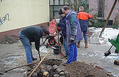 Kindergarten-Väter verschönerten den Außenbereich (Foto:privat)(bro) Bei einer Samstagsaktion wurde von einigen Kindergarten-Vätern unter fachlicher Anleitung der Firma Markus Morr aus Lindach ein neuer Freisitz im Kindergarten Regenbogen errichtet. Alle Beteiligten spendeten ihre Arbeitszeit und -kraft für die Regenbogenkinder, damit diese sich auch bei Regen draußen aufhalten können. Die Anschaffung des Materials für den Freisitz wurde aus Spendengeldern finanziert. Die Snackbar Branco spendete den Helfern das Mittagessen.