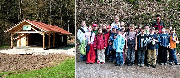Einweihung am 16. April - Schüler der Steige-Grundschule bestaunten das Klassenzimmer vorab (Fotos:privat)(bro) (ps) Groß war die Freude der Schüler der Klasse 2b der Steige-Grundschule, als sie vergangenen Montag mit ihren Lehrerinnen Edith Schiml und Helga Dietl als erste das neue Waldklassenzimmer im Gretengrund bestaunen durften. Schnell eroberte die muntere Schar bei strahlendem Wetter die umgebaute Gretengundhütte und das weitläufige Wiesengelände, auf dem es so viel zu entdecken gibt. Wald, Wiese und Bach geben vielfältige Möglichkeiten zu waldpädagogischen Erlebnis- und Unterrichtseinheiten. Die Kinder der Klasse 2b sind sich einig: "Da wollen wir bald wieder hin." Ein Wunsch, dem die Klassenlehrerin gerne nachkommt.