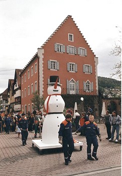 Der Winter wird verbrannt (Foto:privat)(cr) (gl) Der Bürger-und Heimatverein lädt Jung und Alt am kommenden Sonntag, 24. April, zur Teilnahme am Sommertagszug ein. Aufstellung ist um 13.30 Uhr auf dem Turnplatz bei der katholischen Kirche. Durch die Stadt zieht der Zug zur Berufsschule wo Frühlingslieder gesungen und Gedichte vorgetragen werden. Schließlich wird der Winter in Form eines großen Schneemanns verbrannt.