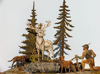 Die Jagd im Leben der Völker - Ausstellung im Zinnfiguren-Kabinett (Foto:privat)(cr) Das Schwerpunktthema im Eberbacher Zinnfiguren-Kabinett für die Jahre 2005/2006 lautet "Die Jagd im Leben der Völker". Mehr als 1000 Zinnfiguren, angeordnet in spannenden Dioramen, Vignetten und Einzelfiguren, laden ein zu einem Streifzug durch die Jahrtausende und zugleich zu einem Besuch der Tierwelt am Nord- und Südpol, in den heißen Savannen von Afrika, im Dschungel von Indien, in den Prärien Nordamerikas und in den Wäldern Europas.