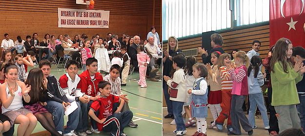 Türkisches Kinderfest in Eberbach gefeiert (Fotos:C.Richter)(cr) Am 23. April 1920 wurde die türkische Republik gegründet. Der Staatsgründer Mustafa Kemal Atatürk erklärte diesen Tag zum türkischen Kinderfeiertag. Seit 1972 feiert man auch in Eberbach dieses Kinderfest. Gestern luden alle türkischen Vereine Eberbachs die Bevölkerung zum Mitfeiern in die Dr.Weiß-Mehrzweckhalle ein. Mitorganisatorin Nursin Yavuz, türkische Muttersprachenlehrerin an den Eberbacher Schulen, begrüßte die Anwesenden zu diesem Fest. Zahlreiche Kinder aus Kindergärten, Schulen und Vereine sorgten mit Gedichten, Gesang und Tanz für ein abwechslungsreiches Programm. Neben Wettspielen und Tombola für Kinder und Erwachsene kamen auch Musik und Fun sowie traditionelles Essen und Trinken nicht zu kurz.