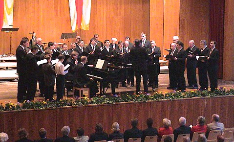 Hörenswertes Chorkonzert in der Stadthalle (Foto:Richter)(hr) Mit einem eindrucksvollen Konzert gingen am Samstag, 23. April, in der Stadthalle Eberbach die Kurpfälzer Chortage zu Ende. Unter dem Motto "Von der Klassik bis zur Moderne" präsentierten verschiedene Chöre aus dem kurpfälzischen Sängerkreis einen Querschnitt aus mehreren Jahrhunderten Chormusik. Mit dabei waren der MGV Singverein-Freiheit 1889 Schönau (unser Bild), der MGV Liederkranz 1920 Mönchzell, die "Human Nation" St. Leon-Rot, die Chorgemeinschaft MGV 1912 Sängerlust Rockenau / MGV 1950 Igelsbach, die "Rocky Harmonists" aus Eberbach sowie die Chorgemeinschaft der Marx´schen Chöre aus Heidelberg, Mannheim, Ludwigshafen und Otterstadt.