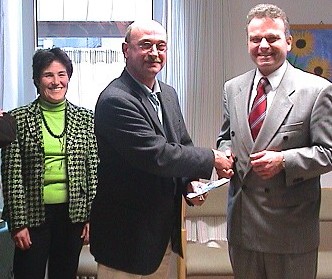 Ort der Akzeptanz in Eberbach gefunden Bürgermeister Bernhard Martin (r.) gratuliert Hans Martin Brück vom Diakonischen Werk zu den neuen Räumen. Links Dekanin Hiltrud Schneider-Cimbal. (Foto:C.Richter)(cr) Seit April 2000 betreibt das Diakonische Werk in Eberbach die Tagesstätte für psychisch behinderte Menschen. Vor kurzem konnten neue Räumlichkeiten in der Friedrichstraße 14 bezogen werden. Am 27. April wurden diese Räume der Öffentlichkeit vorgestellt. Zu den Gratulanten gehörten auch Hiltrud Schneider-Cimbal, Pfarrerin in Eberbach und Dekanin des evangelischen Kirchenbezirks Neckargemünd, Bürgermeister Bernhard Martin sowie Manfred Schöniger, Vertreter des Diakonischen Werks Baden.