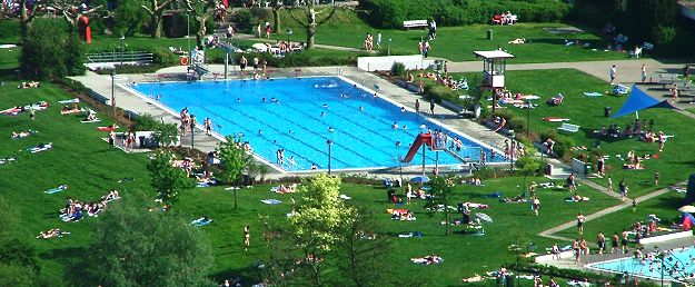 Freibadsaison beginnt mit echtem Sommerfeeling (Foto:Richter)(hr) Glänzender hätte der Start in die neue Freibadsaison gestern nicht sein können: Bei sommerlichen Temperaturen bis an die 30-Grad-Marke und freiem Eintritt strömten hunderte Badegäste ins frisch renovierte Badezentrum, bevölkerten die Liegewiese und vergnügten sich im großen Becken mit Sprungbrettern und Wasserrutsche oder im ausgedehnten Kinderbereich.