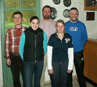 HG Eberbach und SG Waldbrunn rücken noch enger zusammen Unser Bild zeigt die neue Vorstandschaft der SGH Eberbach/Waldbrunn mit dem 1. Vorsitzenden Uwe Weis (r.), dessen Stellvertreter Jens Späth (l.), der Kassenführerin Bianca Michalske (2.v.r.), der Jugendvertreterin Jacqueline Mader (2.v.l.) und dem Vertreter der Damenmannschaft Kai Bissdorf (Mitte). Es fehlen Schriftführerin Annika Karl und die Vertreterin der Damenmannschaft Elisabeth Diemer. (Foto: Hofherr)