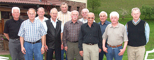 Strümpfelbrunns Meistermannschaft von 1963 traf sich Die Meistermannschaft des TSV Strümpfelbrunn traf sich gestern in der "Holzners-Mühle". Die Mannschaft stieg damals in die II. Amateurliga auf. Unser Foto zeigt von links Anton Habel, Alfred Geppert, Helmut Schöpwinkel, Gerd Flaig, Adolf Haas, Karl Gramlich, Rolf Hagendorn, Otto Pfrang, Fred Schmitt, Albert Müller und Fritz Brunner.(tb) "11 Freunde sollt ihr sein", dieser Spruch von Alt-Bundestrainer Sepp Herberger galt für die Meistermannschaft des Jahres 1963 vom TSV Strümpfelbrunn nicht nur auf dem Rasen, sondern hat auch noch heute Tradition. Regelmäßig sehen sich die ehemaligen Aktiven des TSV Strümpfelbrunn bei runden Geburtstagen wie gestern beim Geburtstag des Torwarts Adolf Haas oder kameradschaftlichen Treffen und erinnern sich dabei an den Aufstieg mit der ersten Mannschaft im Jahre 1963 in die II. Amateurliga, damals die vierthöchste Spielklasse Deutschlands. In diesem Jahr wurde man sowohl mit der ersten und zweiten Seniorenmannschaft Meister der A-Liga und feierte somit wohl den größten Erfolg in der Vereinsgeschichte des TSV Strümpfelbrunn. Insgesamt konnten sich die Strümpfelbrunner sieben Jahre in der II. Amateurliga halten und waren für manche Überraschungen gut.