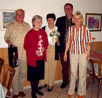 Anlässlich dieses Jubiläums traf man sich zu einem gemütlichen Beisammensein, bei dem sich Bürgermeister Thomas Ihrig namens der Gemeinde Hesseneck jeweils mit einer Urkunde und einem Weinpräsent bedankte. Die Pensionsinhaberin, Frau Helga Grim, freute sich über die wiederholten Besuche in ihrem Haus und überreichte ebenfalls Präsente.