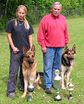 Im Schutzdienst viel dann die Entscheidung über den Tagessieg. Karl Lammer mit seinem Champ erreichte mit 97 Punkten die höchste Bewertung und wurde mit einer Gesamtpunktzahl von 284 Tagessieger. Katja Paulus mit ihrem Joker bekam den Pokal für die beste Unterordung, bei gleicher Punktzahl jedoch höherer Prüfungsstufe.