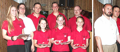Langjähriges Vorstandsmitglied ausgeschieden Das Jugendblasorchester Waldbrunn ehrte gestern Mitglieder. Unser Foto zeigt vorne die geehrten Mitglieder des Jugendblasorchesters Corina Hammel, Leonie Heck, Andrea Kreisel und Helen Herhuth zusammen mit Dirigent Peter Schäfer, 2. Vorsitzenden Jochen Schäfer, 1. Vorsitzende Nadja Scholl und dem 3. Vorsitzenden Peter Betzin (hinten von links nach rechts), sowie den aus der Vorstandschaft ausgeschiedenen Helmut Stöckl. (Fotos: Baumgartner)
