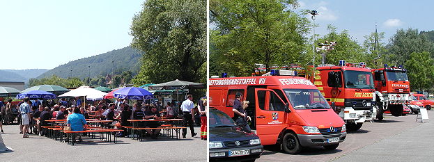 Das Wetter am St. Florianstag war mehr als schön, sogar etwas zu heiß. Die Hirschhorner Wehr hatte alles aufgeboten um ihre Gäste bestens zu bewirten. Aber auch die Geräteshow war beeindruckend. Vor allem stieß das große Löschfahrzeug der US Army und das Löschfahrzeug für Bahneinsätze, Tunnel- und Streckenarbeiten, das bei der Beerfeldener Feuerwehr stationiert ist, auf großes Interesse. Mit Höhepunkt des Festes an der Slip-Anlage war die Vorstellung Rettungshundestaffel der Feuerwehr des Landes Rheinland-Pfalz mit einigen beeindruckenden Vorführungen.