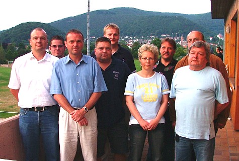 Die Abstiegskröte ist geschluckt aber nicht verdaut Die Vorstandschaft wurde für zwei Jahre gewählt. Auf dem Bild v.l. Patrick Poser, Daniel Rupp, Joachim Scheible, Frank Hagendorn, Christian Rochow, Stefanie Maurovich, Thomas Schlachter, Peter Huck und Horst Hagendorn. (Foto:Richter)(hr) Den Abstieg von der A- in die B-Klasse des Fußballkreises Heidelberg im Jahr 2004 hat der VfB Eberbach auch nach 12 Monaten noch nicht verdaut. Das wurde gestern auf der Jahreshauptversammlung wieder deutlich. Vorsitzender Joachim Scheible sprach vom "tiefsten Sturz, den der VfB jemals hinnehmen musste". Und die sportlichen Defizite machen sich auch in der Vereinskasse bemerkbar: Kassier Horst Hagendorn verbuchte einen Jahresverlust, der - neben gestiegenen Kosten für den Rasenplatz - nicht zuletzt durch schwindende Eintrittsgelder bei den Spielen und niedrigere Umsätze an der Vereinstheke entstanden ist. Gleichwohl sei die Zahlungsfähigkeit des Vereins nicht gefährdet, betonte Hagendorn auf Nachfrage aus der Runde der 34 erschienenen Vereinsmitglieder.