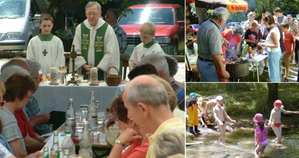 Während der Feldmesse, die von der katholischen Pfarrkarpelle gestaltet wurde, ging der scheidende Präses, Pfarrer Hubert Seitz, auf Ängste und Nöte in unserer Konsumgesellschaft ein. Für die jüngsten Mitchristen fand eine Kinderkirche statt.